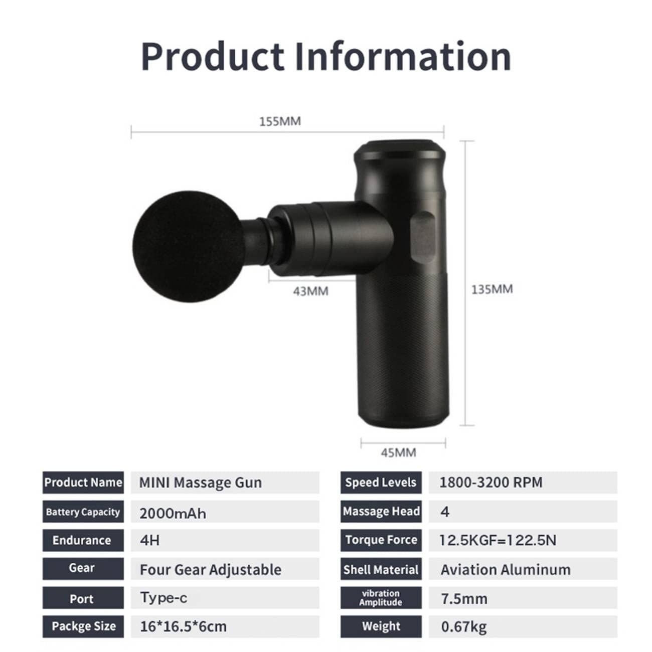 There are Four adjustable speeds and four head accessories of different sizes and shapes designed to meet different needs and target specific areas of the body. Up to 3200 strokes per minute, this massage gun can deeply massage 7.5mm muscles.